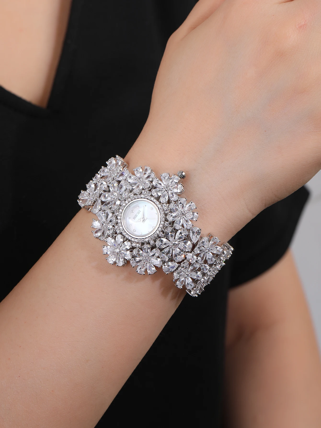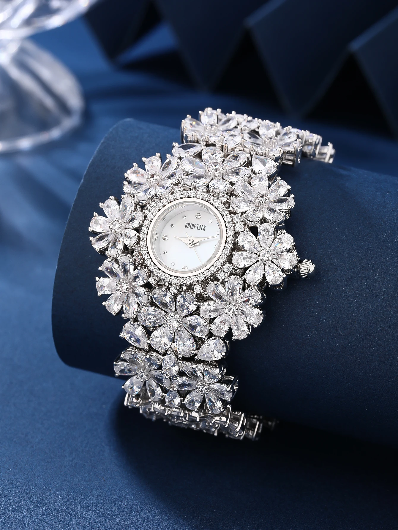 Wholesale Custom Classic Luxury Simple Zircon Petal Women's Watches Beijing Brand White Gold Band Waterproof Quartz Movement